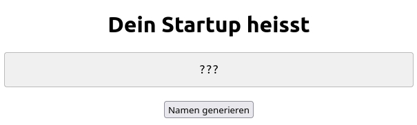 Erstelle eine Applikation, die auf Knopfdruck Namen für dein zukünftiges Startup generiert.